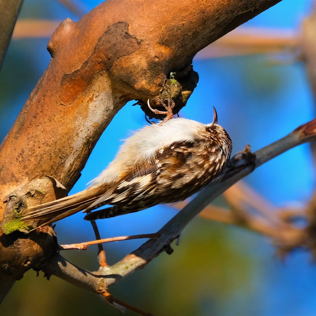 This brown creeper heard that I mentioned “along the bottom side of a branch” but didn’t have a good example picture to show you, so now we have one, and nope, I didn’t just rotate an image 90°. They really are this crazily acrobatic.