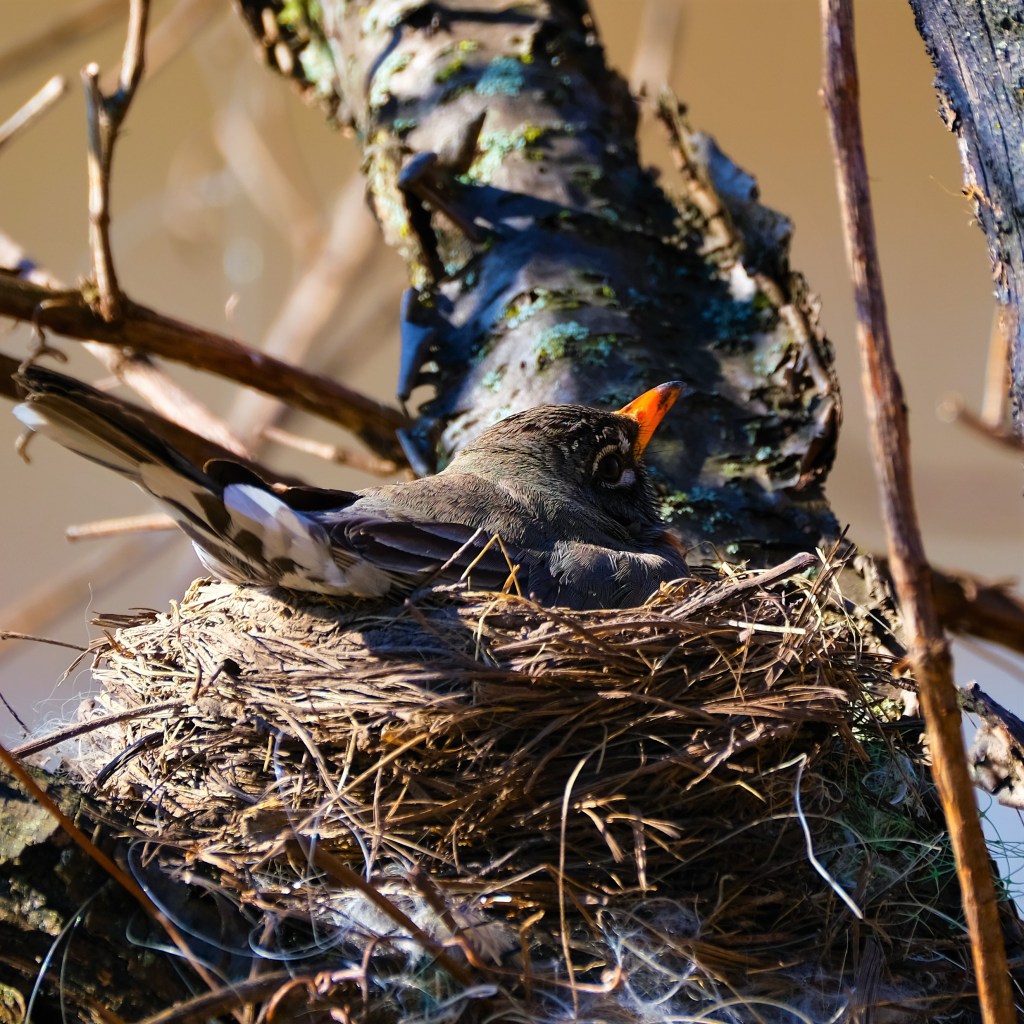 And a robin was already on her nest. She didn’t move while I was there, and I didn’t stay long, so we can hope that she’s already busy laying her first clutch. Hopefully, she’ll be off foraging next time I go by, and I’ll be able to sneak a peek inside the nest to see how she’s doing.