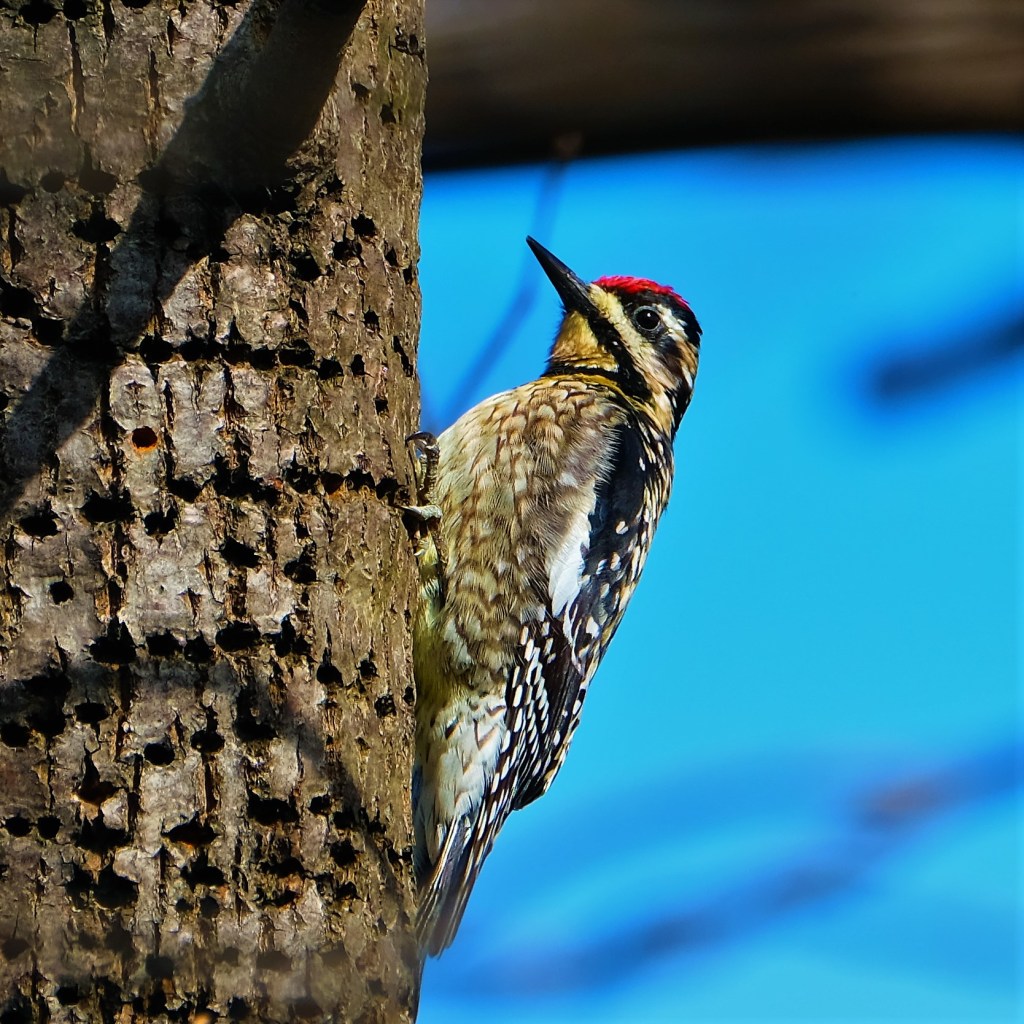 Finally, this female yellow-bellied sapsucker must have heard about the character yesterday who hid his yellow-belly, because here she is showing hers off for all the world to see. Thanks, sweety!
