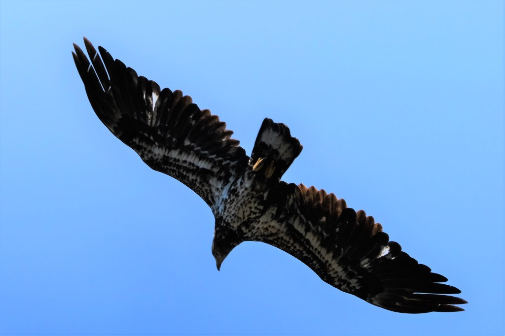 There were a lot of raptors in the air this afternoon, and I counted three turkey vultures, one red-tailed hawk, and one Cooper’s hawk, but the only picture I managed to capture is of this young bald eagle.