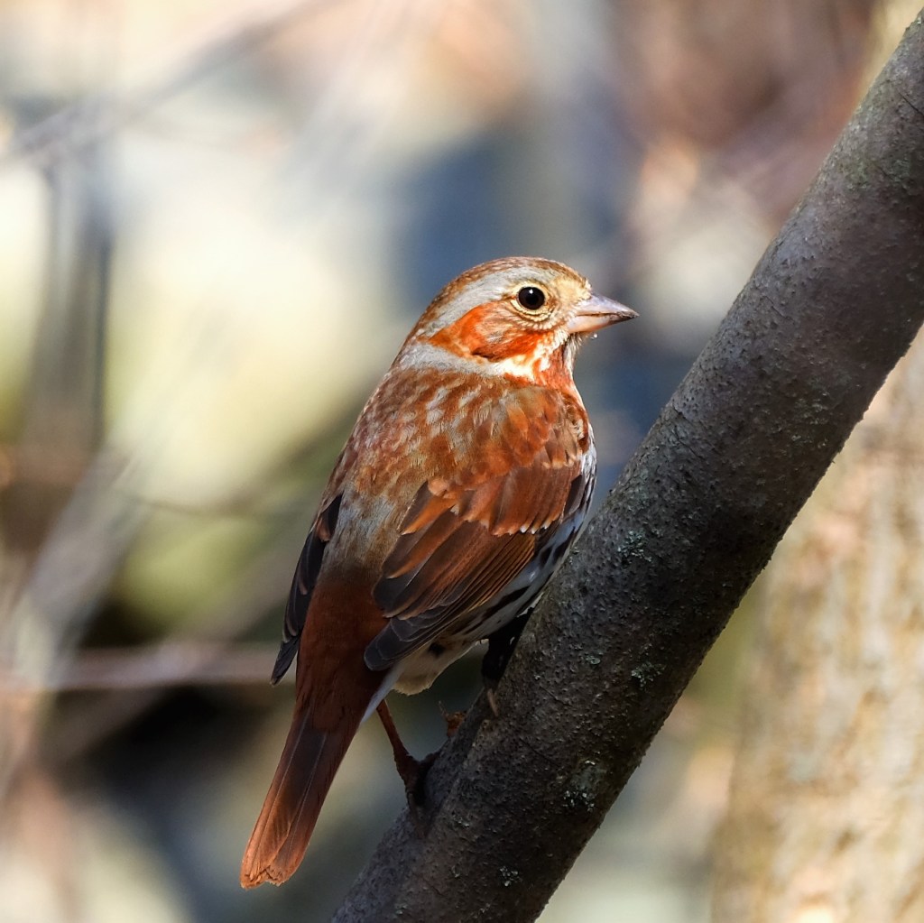 Even lower, I found a fox sparrow. A couple of weeks ago, they were ubiquitous, but now they’ve mostly moved on, and I hardly see them anymore.