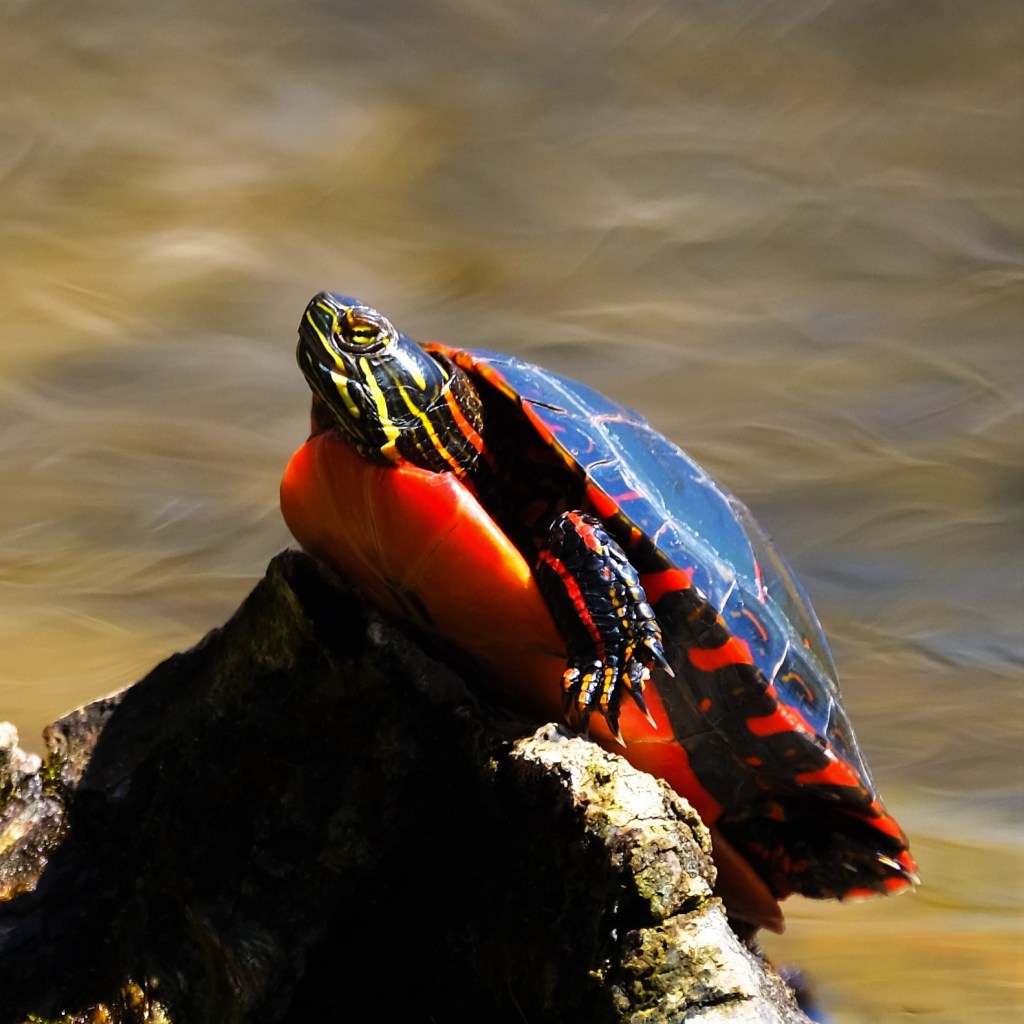 Other critters enticed out into the bright light of day by the warm sun are these turtles on the pond, and they both look like painted turtles.