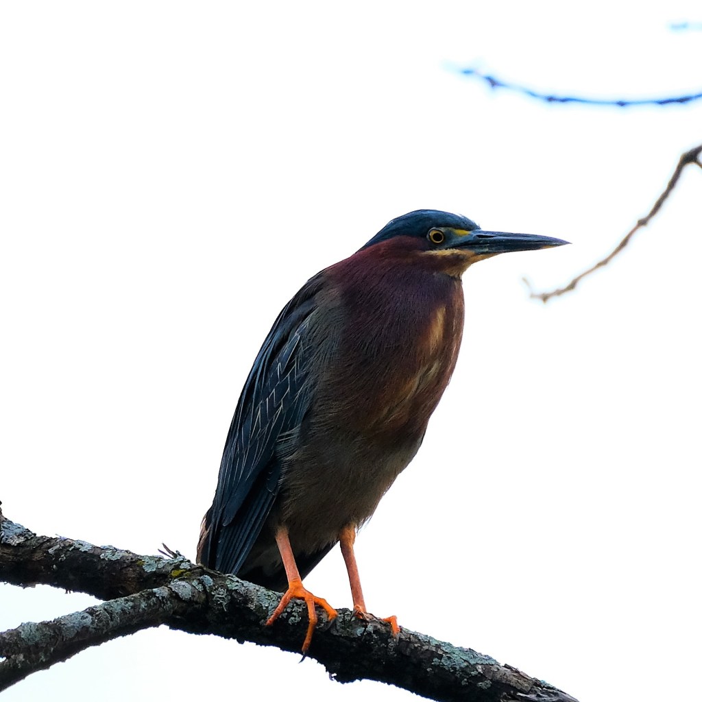 When I arrived at the pond, I found a green heron again, but this might be a different individual from the one we saw yesterday because it has much less yellow between its eye and its beak. Great! The more, the merrier!