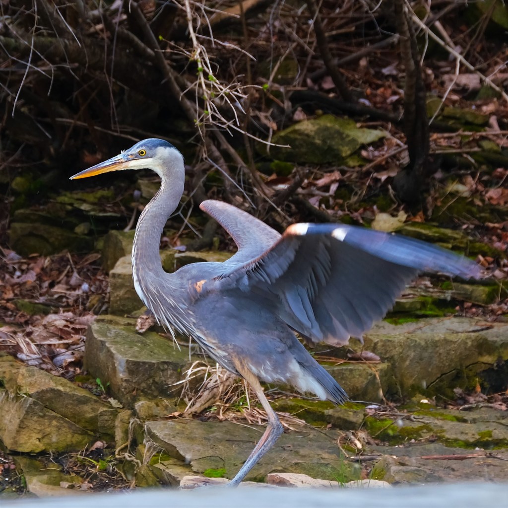 On my way back south, I finally managed to capture an image, this time of a great blue heron back to fishing at the falls.