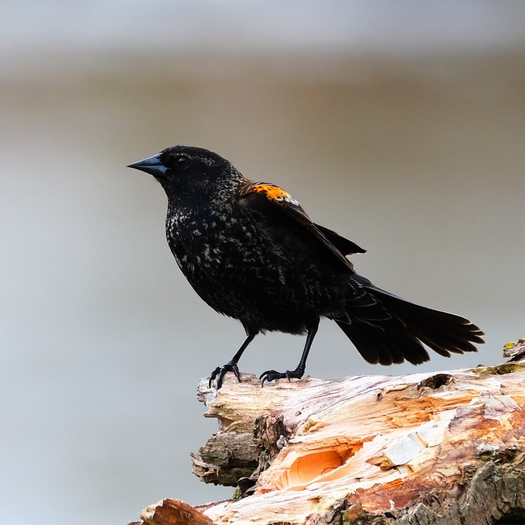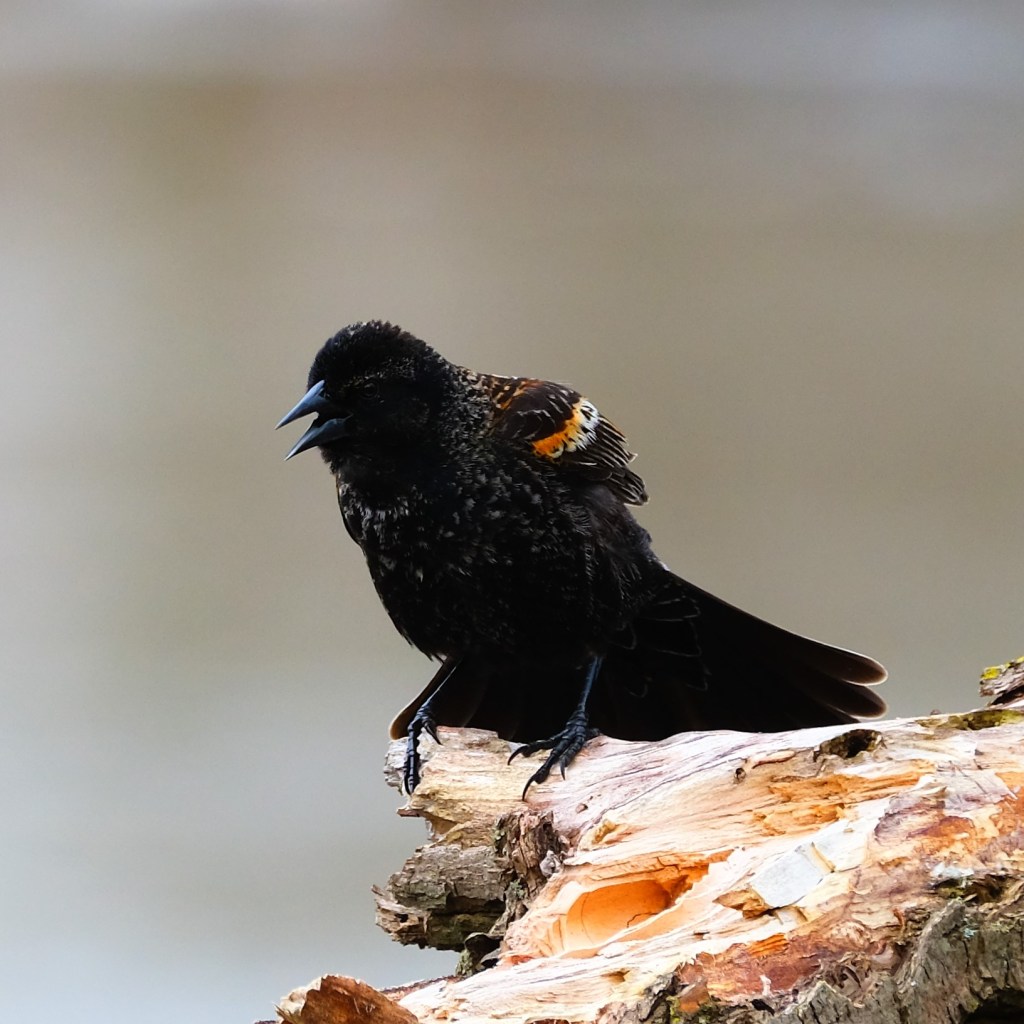As I was trying to get a better picture of the waterthrush, there was a big splash at the water’s edge, and this young, male, red-winged blackbird shot up to perch on this branch, preen a bit, and make his call. My guess is that a big catfish made a try for him, and he had to dry off and collect is nerves. Either way, I did not realize that these young ones would be adding to the cacophony. Perhaps he just wanted to let everyone know he was okay and he meant to do that.