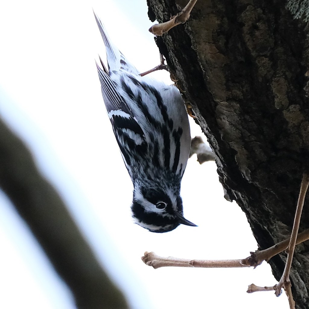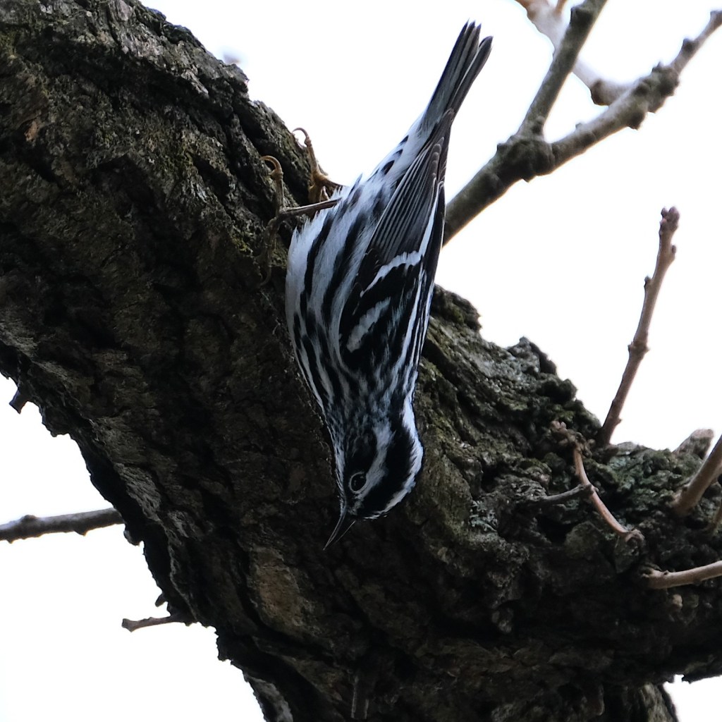 So, besides the common yellowthroat picture I didn’t get, and northern waterthrush picture that it’s best you don’t zoom in on, I did manage to get a few presentable images of our first black-and-white warbler of the season, which Charlotte actually spotted first. They winter in Mexico, Central America, or South America, so I bet it was famished after that long flight.