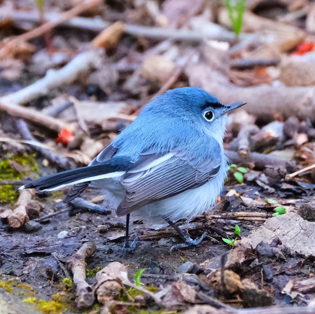 By the pond and elsewhere throughout the park, the blue-gray gnatcatchers were plentiful, and here a male, with his Groucho Marx eyebrows.