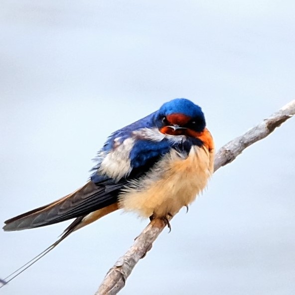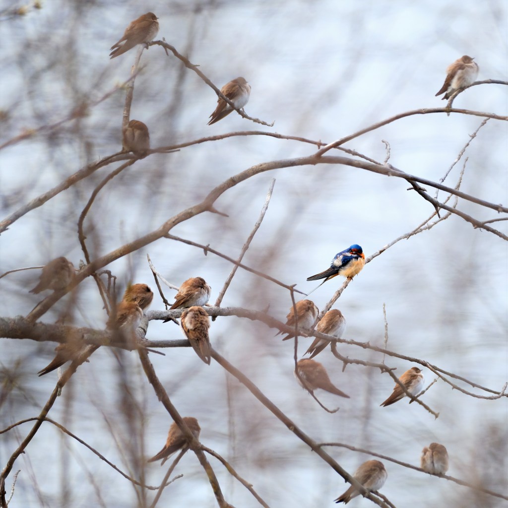 Here’s the one barn swallow (Hirundo rustica) with its “rusty” “throat and forehead”, which I’ve never seen in Estabrook before, probably because we don’t have any barns.