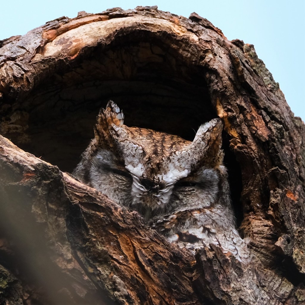 A gray morph eastern screech-owl in a hole so small I would have never thought to look in. I wonder if it knows the red morph we saw for a few days last week.
