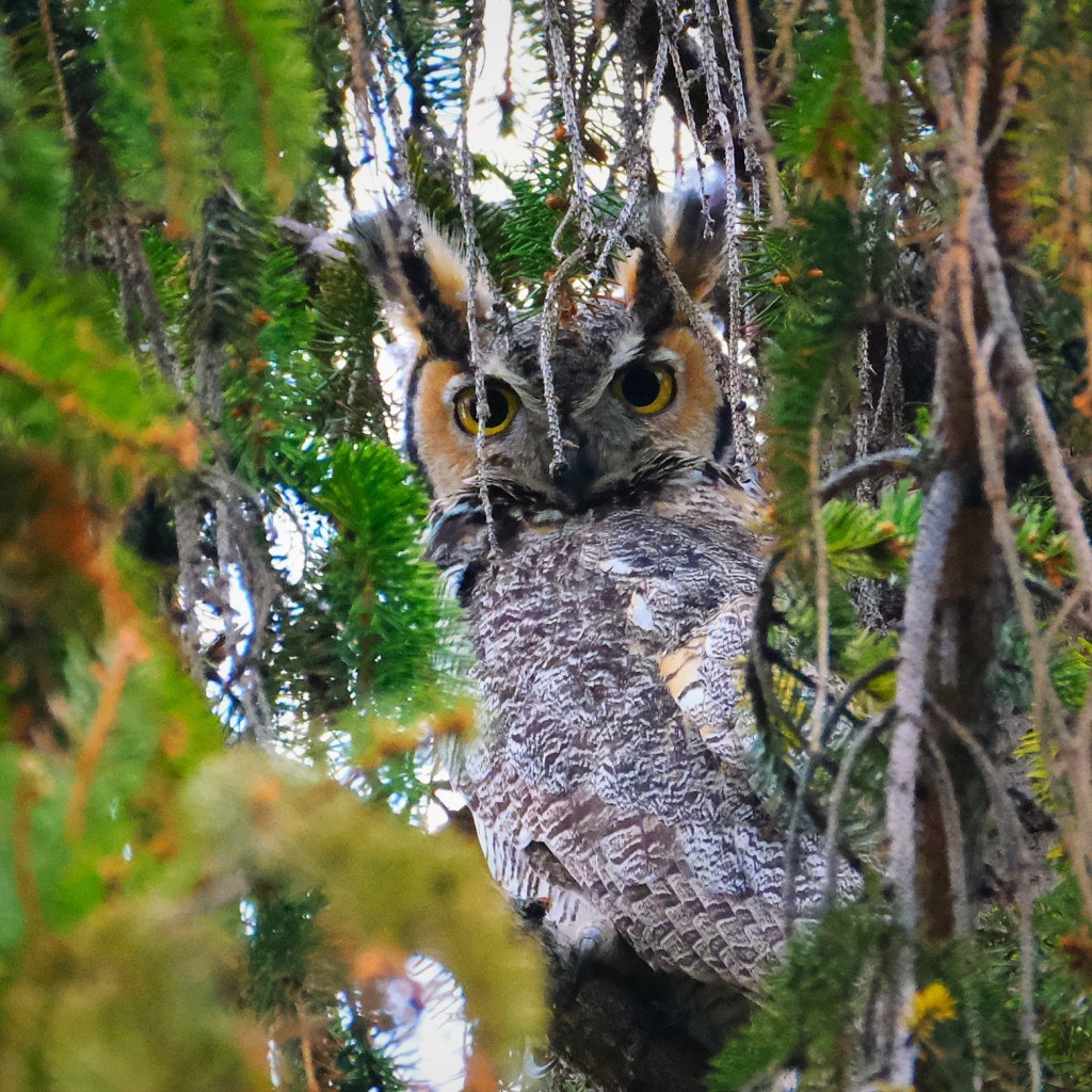 And look who’s up there with it! Holy Smokes! A great horned owl!