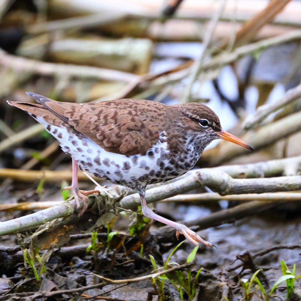 As I crouched down at the water’s edge so the swallows wouldn’t stick to the far shore, look at the pretty spotted sandpiper who landed right in front of me, gave me a quick look, and proceeded to go about its business anyway. It wasn’t too long before a second sandpiper showed up, made some kind of display with its wings, and they both took off for the far shore. Maybe that’s how sandpipers say “wanna go someplace quieter?”