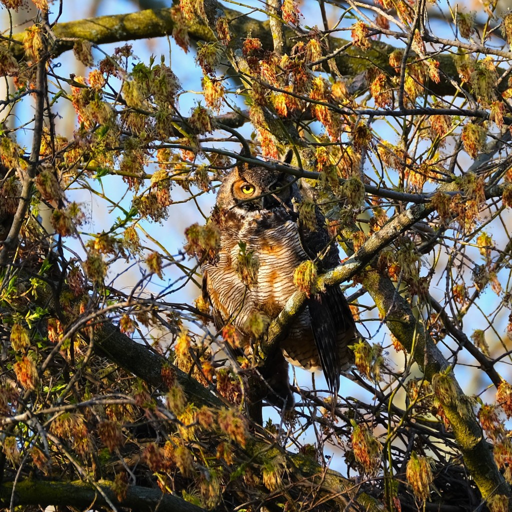 Oh, and while I was at the river, I was thrilled to find our great horned owl awake and not quite as tucked away as usual. Yay!