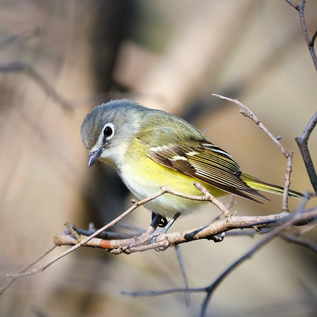 Next, at the south end, I had a nice extended photo shoot with this beauty, a blue-headed vireo, who didn’t have to travel quite as far as the flycatchers.