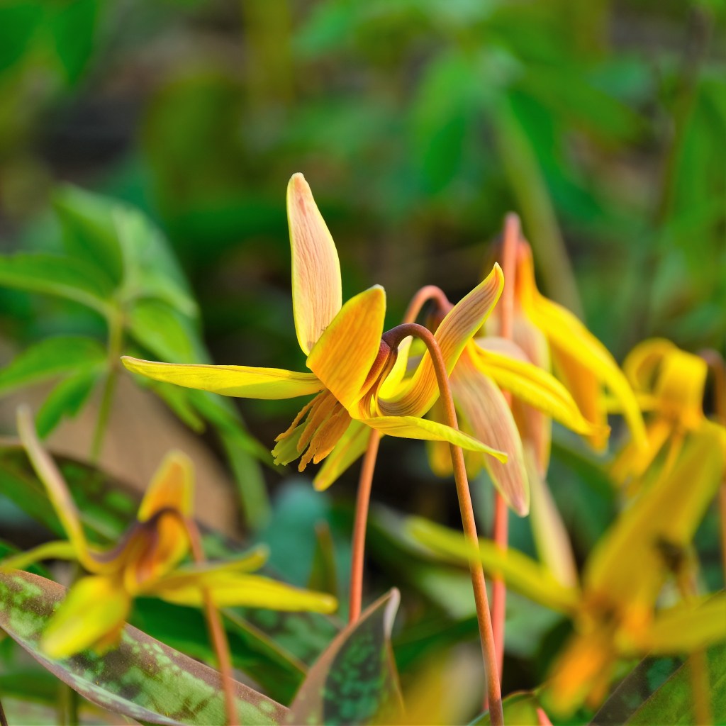 Here’s some yellow trout lily (Erythronium americanum), a distinct species from the slightly-smaller white trout lily (Erythronium albidum) that opened a week or two ago.