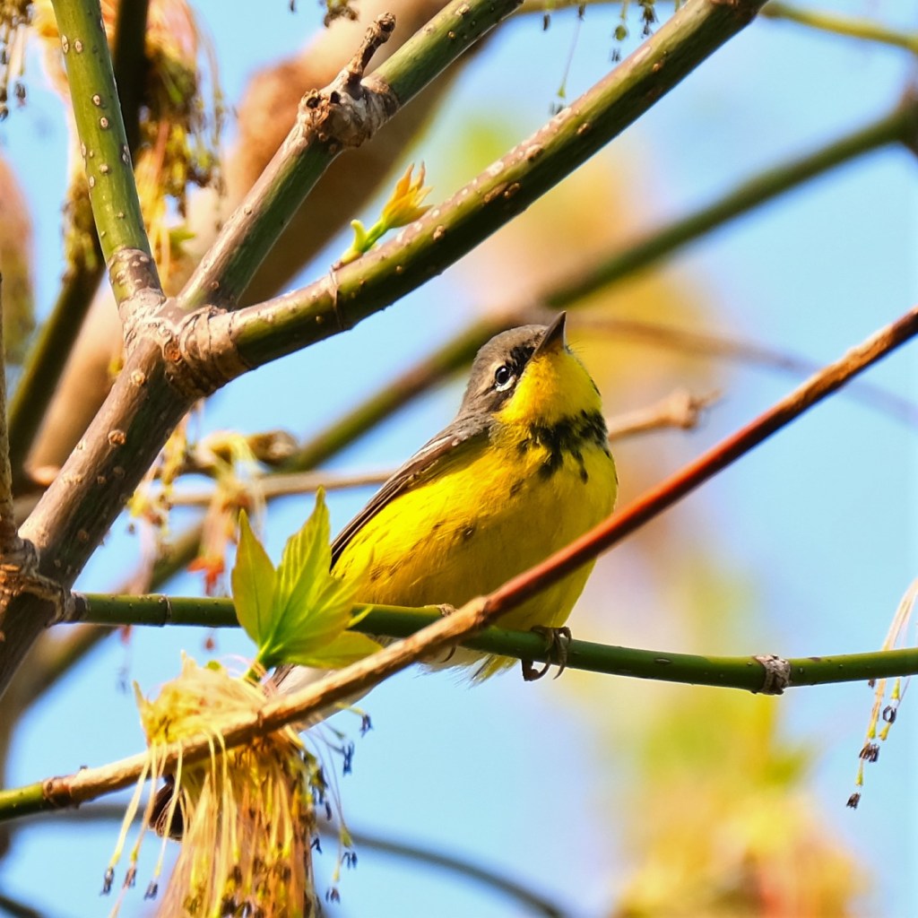 Back in the treetops, here’s a Canada warbler, whom I first thought was a female magnolia warbler, but this is not the first time I’ve made that mistake. Ha! Someday I’ll learn, right?