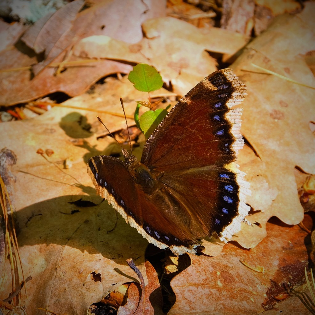 Soon after that, my nephew spotted my first Connecticut mourning cloak butterfly, and this time I had more than just my phone.