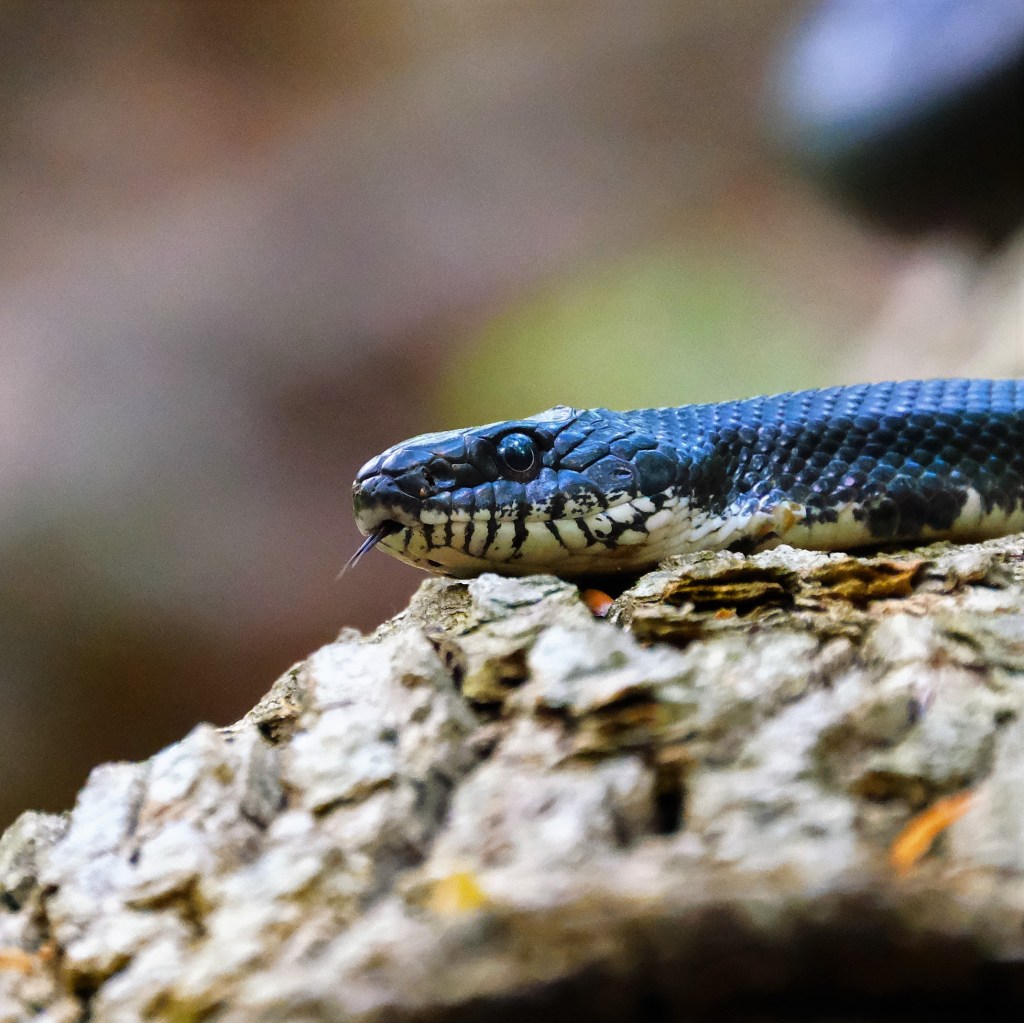 Finally, halfway back down the mountain, my sister spotted an odd, black tube lying on a log. As we looked closer, it began to move. It turns out that she had spotted a giant, eastern ratsnake (Pantherophis alleghaniensis), the “largest snake found in Connecticut.”
