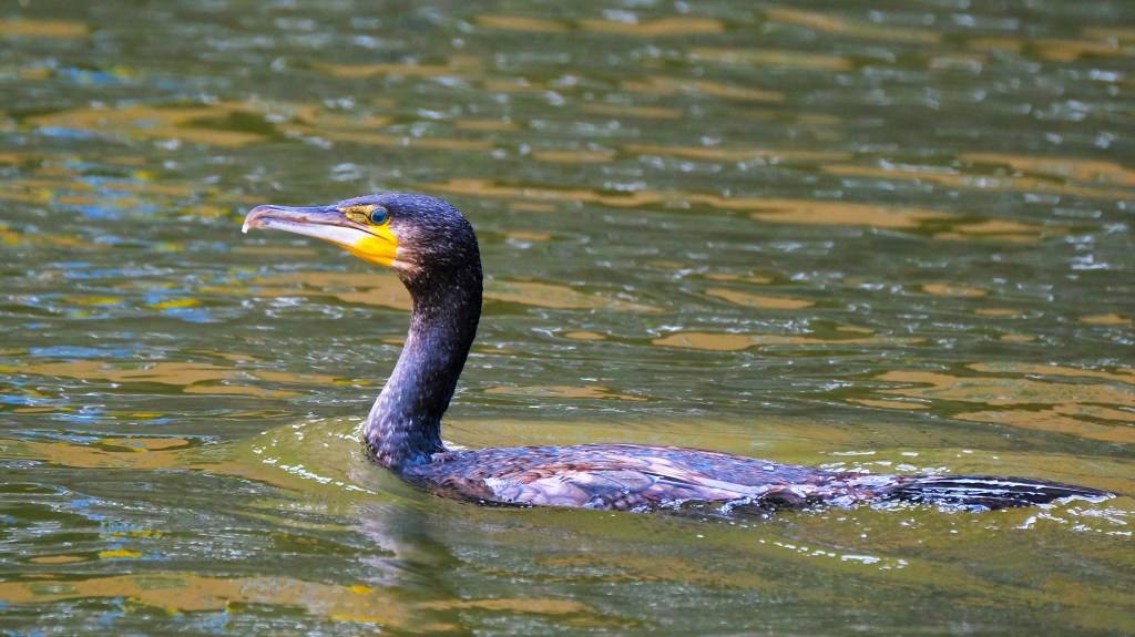 The third new bird, in the water this time, is a great cormorant (Phalacrocorax carbo), who sure looks like the double-crested cormorants we’ve seen in Estabrook Park but can’t be because I’m now a few thousand miles out of their range.