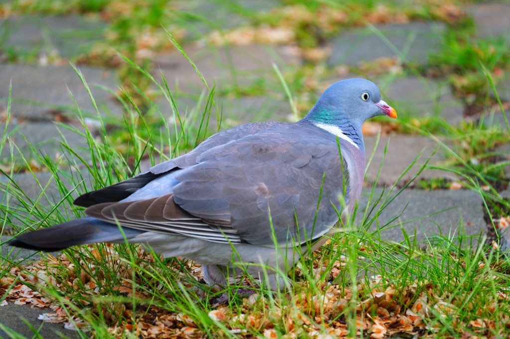 The first new bird for today is a common wood-pigeon (Columba palumbus), which looks a lot like a rock pigeon, the variety that you might see on the streets of most cities, but noticeably larger and with a distinctive white patch on the side of its neck.