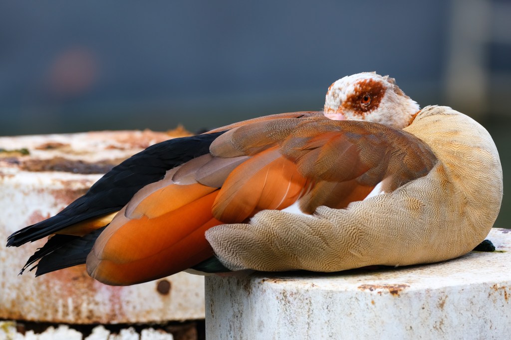 And this Egyptian goose, who was kind enough, or tired enough, to let us get a better look at those pretty feathers it sports.
