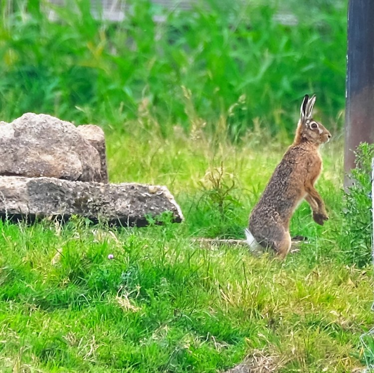 As I was intently focused on the bird, look who was horsing around in the background, a whole down of hares. Here’s four of them.