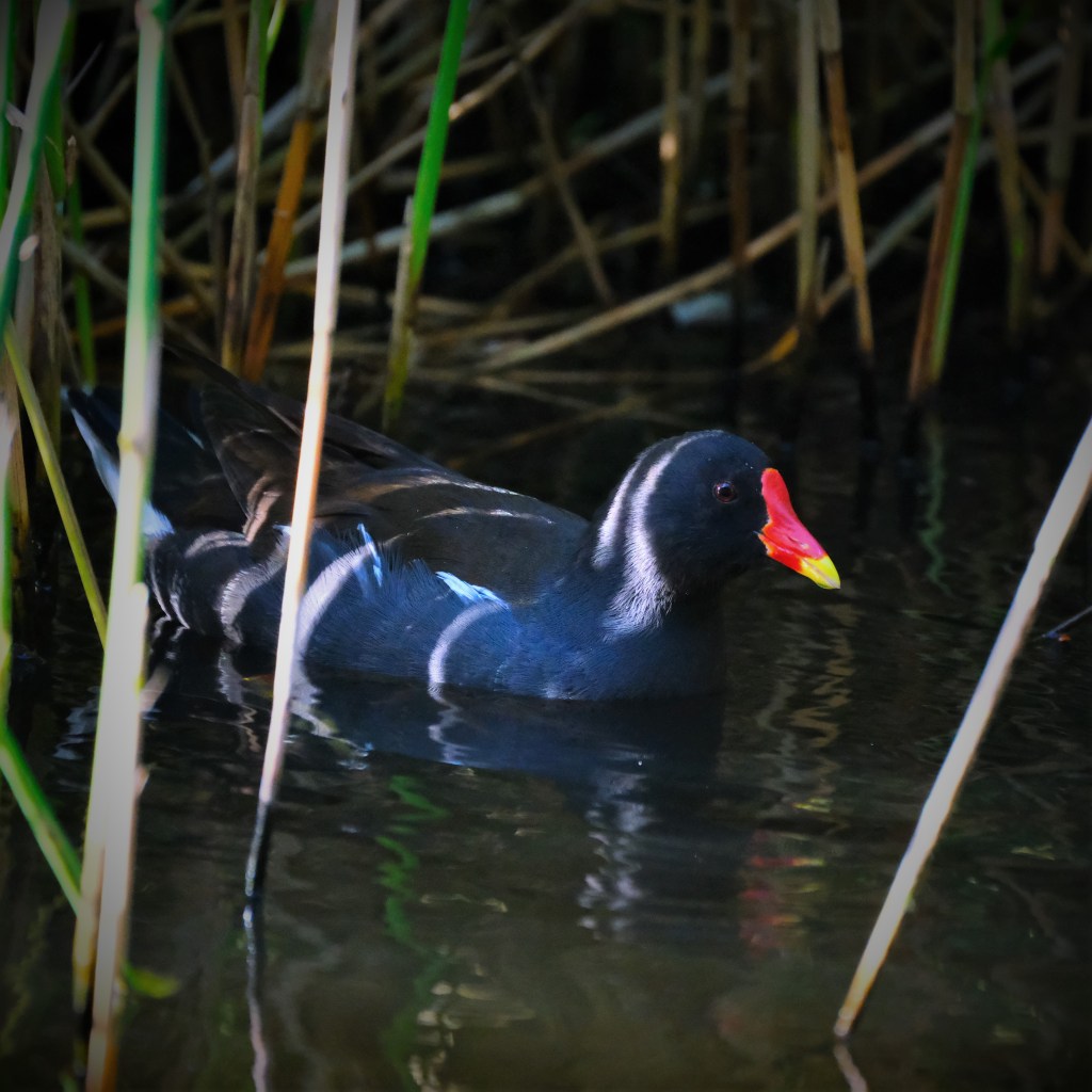 I was surprised to spot more than one, since I haven’t seen one until now, and this one even had a chick with it, but the chick stayed further back into the reeds and so evaded my camera.