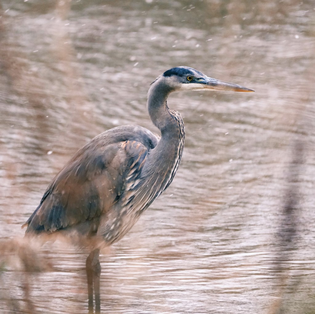 Here’s a sight I don’t get to see everyday, even though they are year-round residents, a great blue heron in the snow.