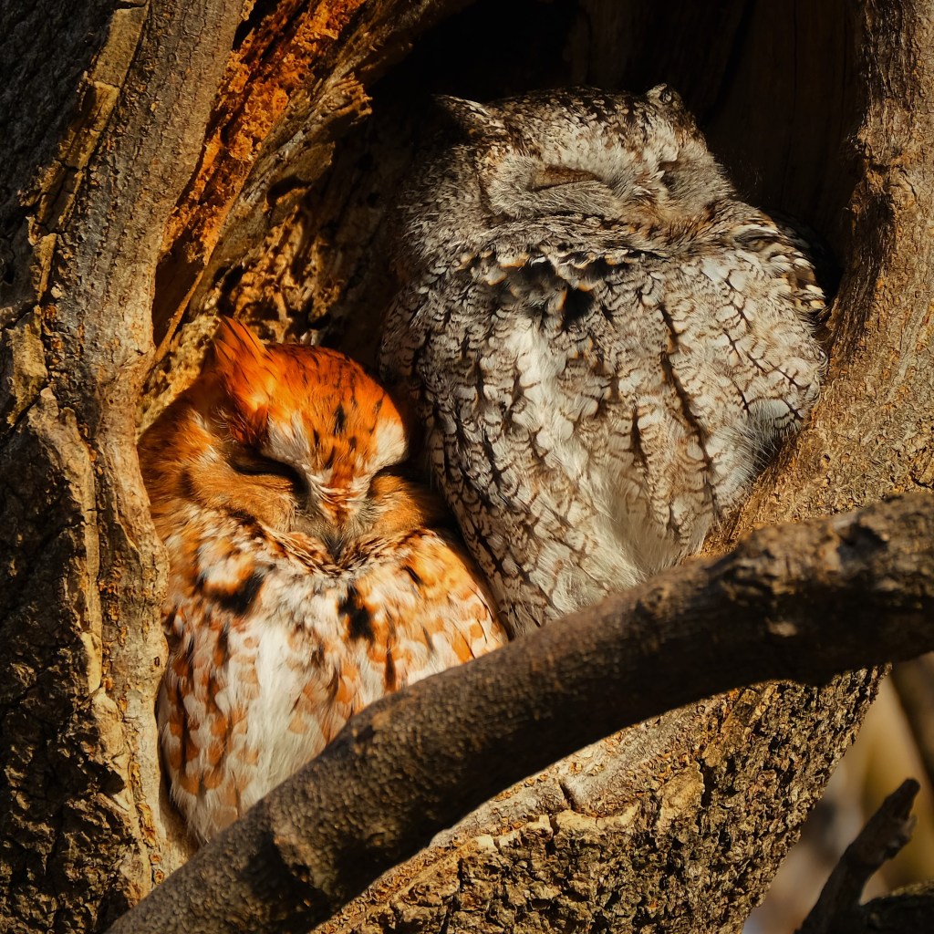 Finally, back up on the bluff at the south end, this male downy woodpecker paused for a second in the morning sun before resuming his hunt for calories. “Keep up the good work, little buddy!”