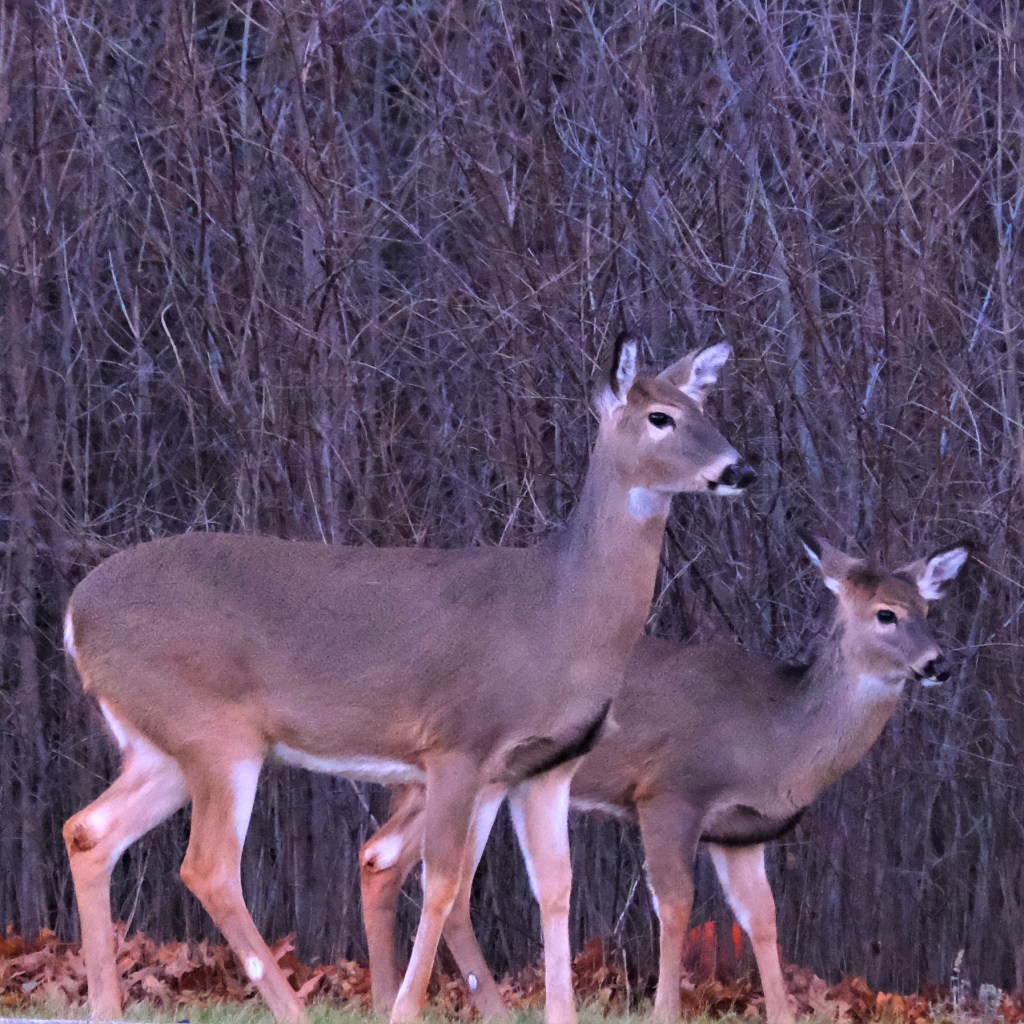 Instead, we’re left with a few of the larger critters, starting with this doe and her youngster by the southern parking lot. A second youngster had slipped through that wall of buckthorn behind them before I could aim my camera.