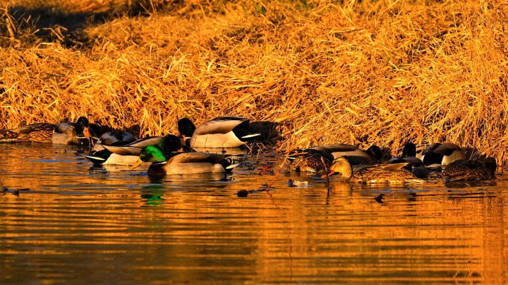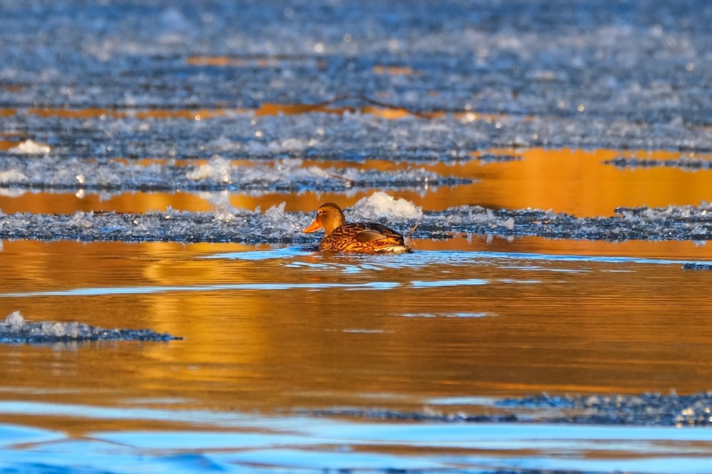 It was another beautiful blue-sky morning in Estabrook, and the low sun gave these mallards a gorgeous golden glow.