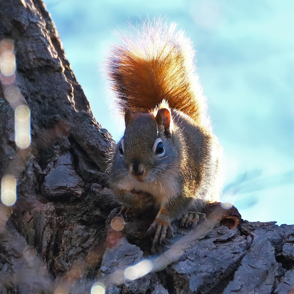 Finally, on my way back south, I spotted a red squirrel who first did its classic “you lookin’ at me” pose.