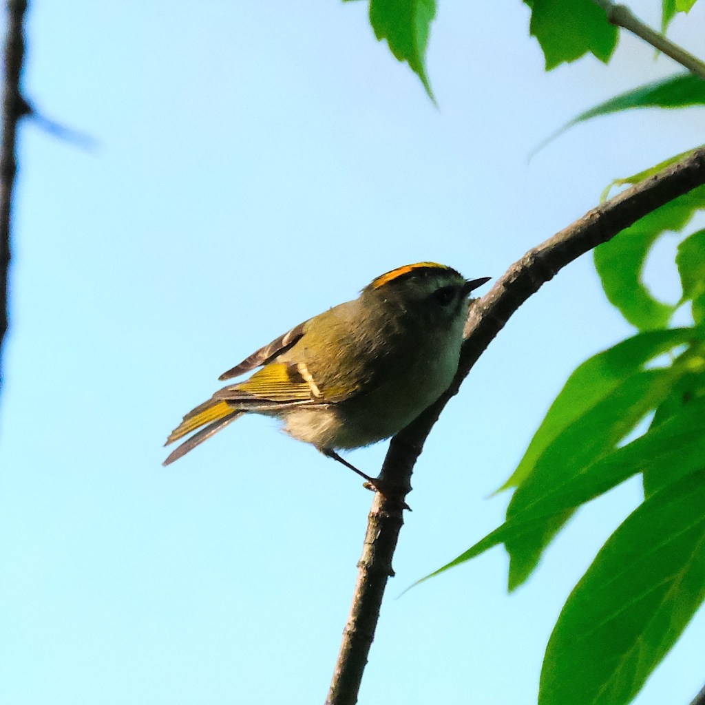 A golden-crowned kinglet was too busy foraging to pose as nicely as the one last week, but it did take a moment to show us its golden-crown.