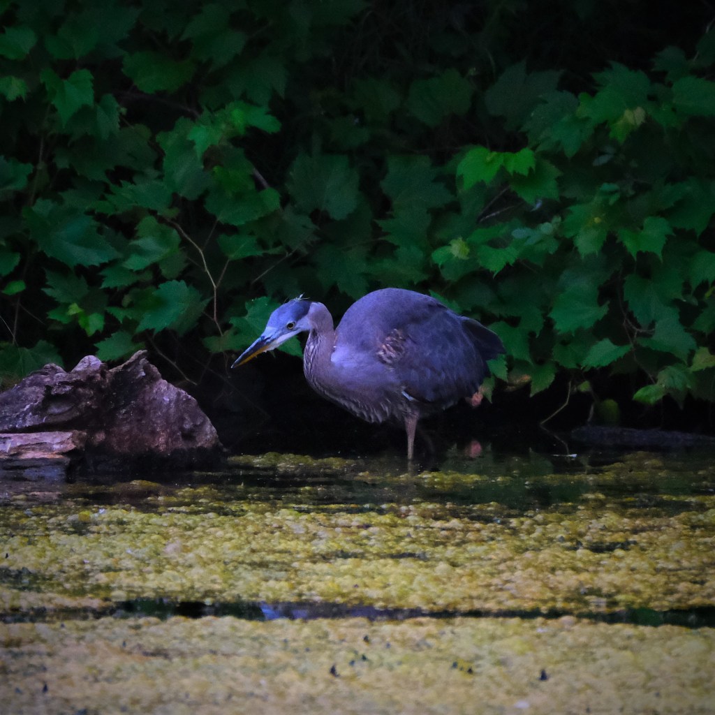 I stopped by the pond again on my way south, and a green heron evaded me, while the ducklings settled down for their early morning nap.