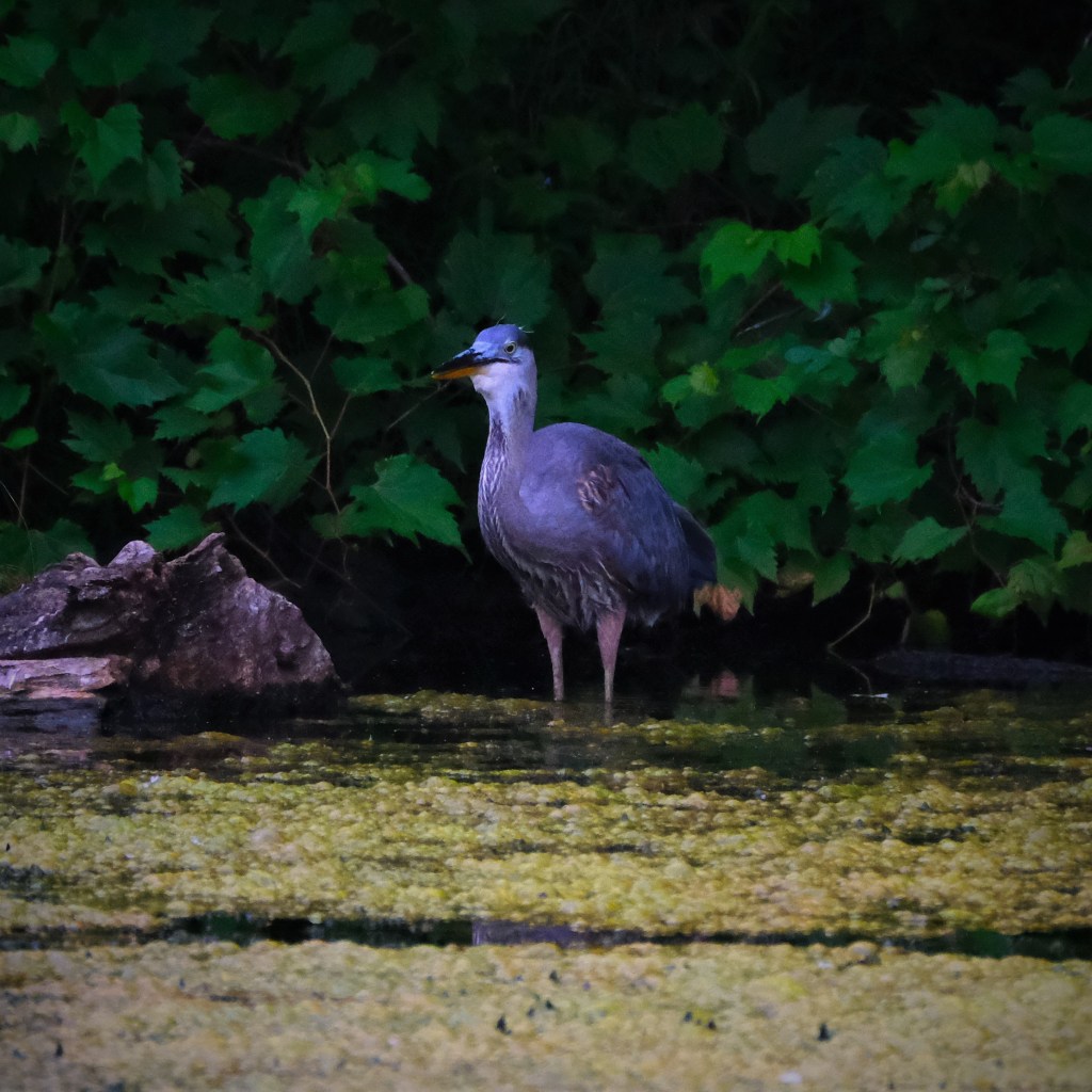 Now that we’re solidly in the Dog Days of Summer, things are starting to slow down in the park, and it’s gonna be a short report today. The weather was pleasant enough, I got to the pond nice and early, a mallard is back to keep the black duck company, but I didn’t see the muskrat. There was a blue heron, but no green herons. The five wood duck ducklings were keeping to their routine, but the mallard ducklings have definitely moved on.