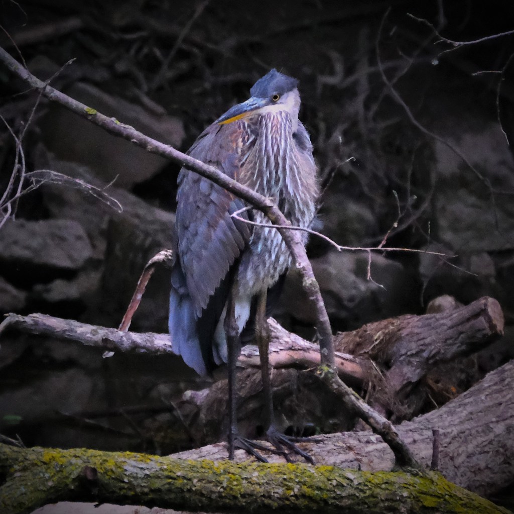 The sudden cold snap brought the birds out like crazy this morning, and I believe I saw more blue herons in the park today than I have ever seen before.