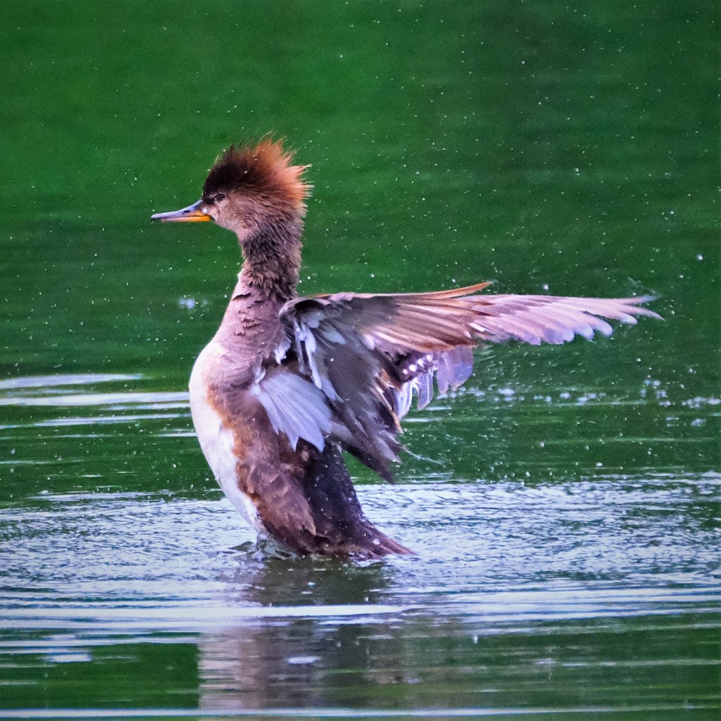 At the pond, the status quo seems to have returned with the two wood duck hens and five ducklings, one black duck hen, and two mallard hen friends. The only notable development I saw was that the ducklings, who are just about five-and-a-half weeks old, are already starting to sport blue wing feathers, just like their mom. They grow up so fast.