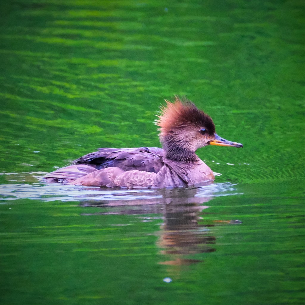 Once I did arrive at the pond, the sun did not disappoint. The wood duck ducklings were lounging in the shade on the east side, but the trees and bushes behind them were alit and reflecting beautifully off the water.