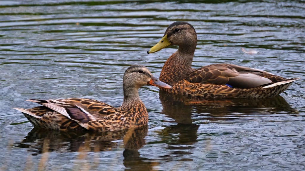 Meanwhile, the American black duck hen and her best buddy the mallard hen were enjoying their morning preen together in the sun.
