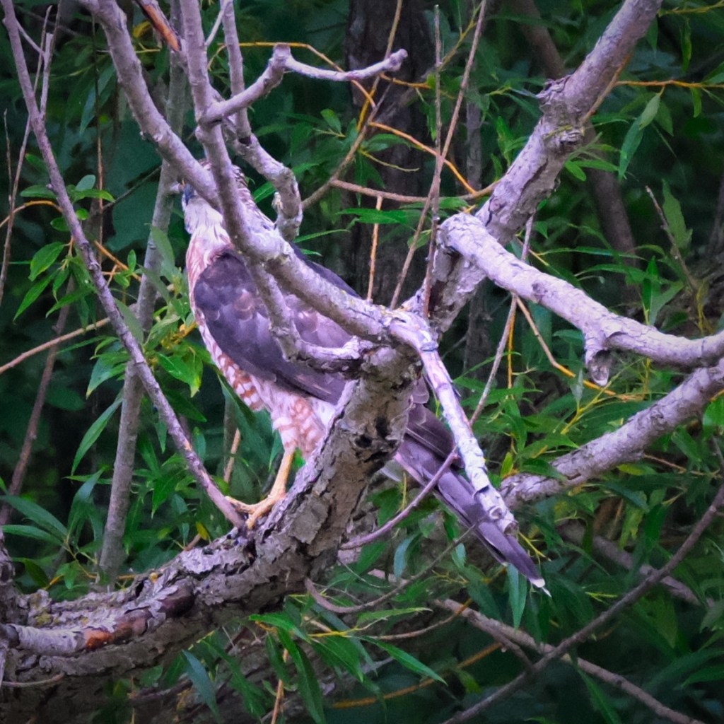 Up river, I spotted another young northern flicker, and this one might not be fledged yet. There was a commotion when Mom or Dad stopped by, which is how I noticed them, but then the youngster was left on his own, and he just kept tucking in and then peeking out to see if his next serving of breakfast had arrived yet.
