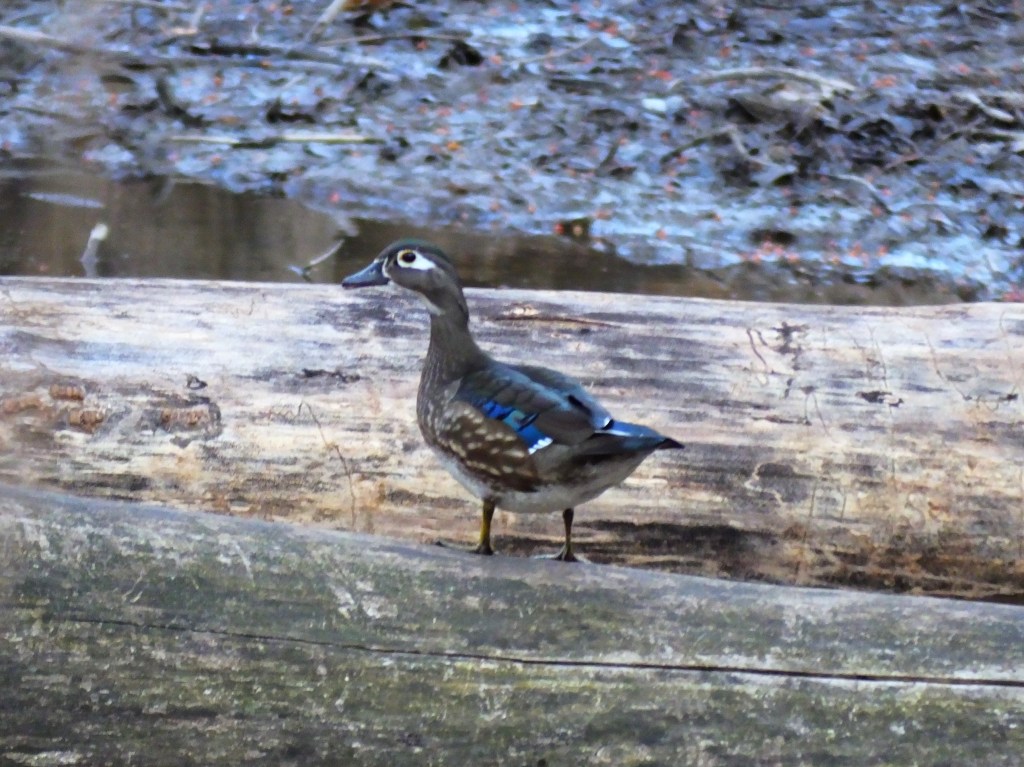 Finally, as I was watching the wood ducks on the pond, it occurred to me that we haven’t seen Mrs. Gadwall in a while, I wonder if she finally continued on, and that’s right when I spotted her.