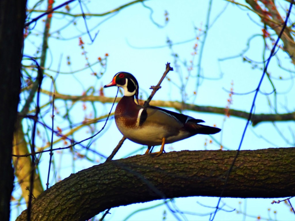 I did finally manage to find wood ducks up in a tree, a sight which eluded me all last summer. They started out low, on a log over the oxbow beside the river.