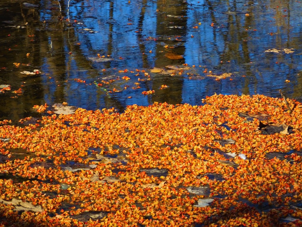 Lastly, some trees are already done with their blossoms, which now form a pretty orange carpet on the oxbow pond beside the river.