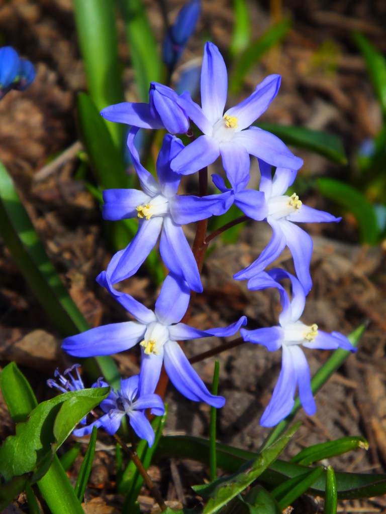 Think “enough with all the animals, and where are the pretty flowers? Here you go! The squills and snow glories are making amazing carpets dotted with clumps of various daffodil varieties on the lawn and in the woods near the pond.