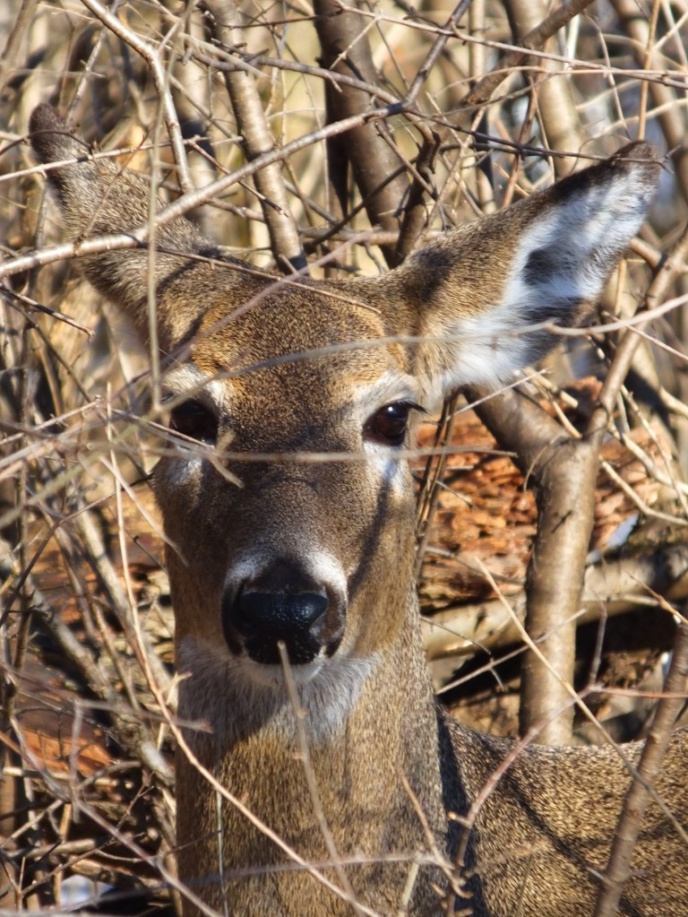 Anyway, the deer seemed unperturbed, and perhaps they were just thrilled to lying on leaves instead of snow for a change. It is fun to watch them simultaneously keep tabs on me and also check on who might be sneaking up behind them with those ears of theirs.