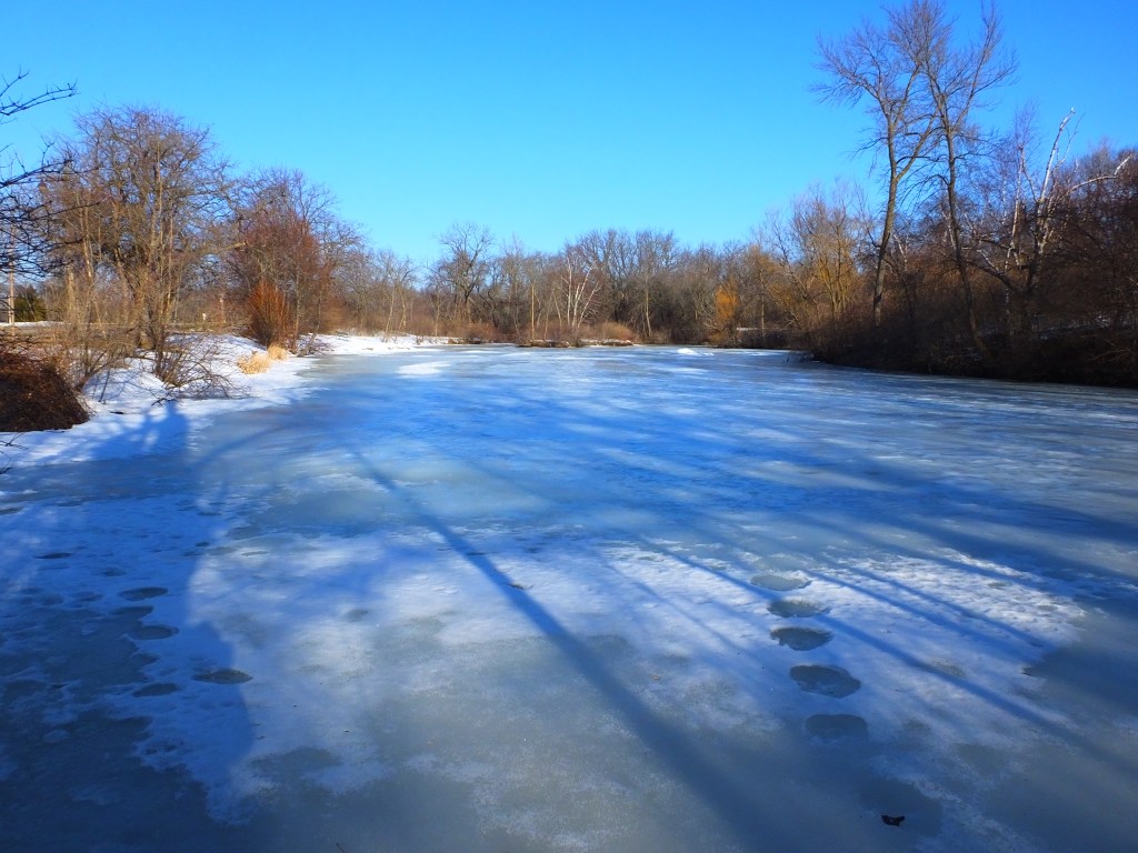 I hiked up to the north end and back with nothing really to report other than that much of the path along the river is now a lumpy sheet of ice, and that might explain the lack of other hikers, which is fine by me. As much as I’d like more people to get to enjoy the park live, it sure feels luxurious when I get to have it to myself for a while, even if that means picking myself up off the ground once or twice. I read that impact helps maintain bone density, and I sure gave my bones a workout this morning.