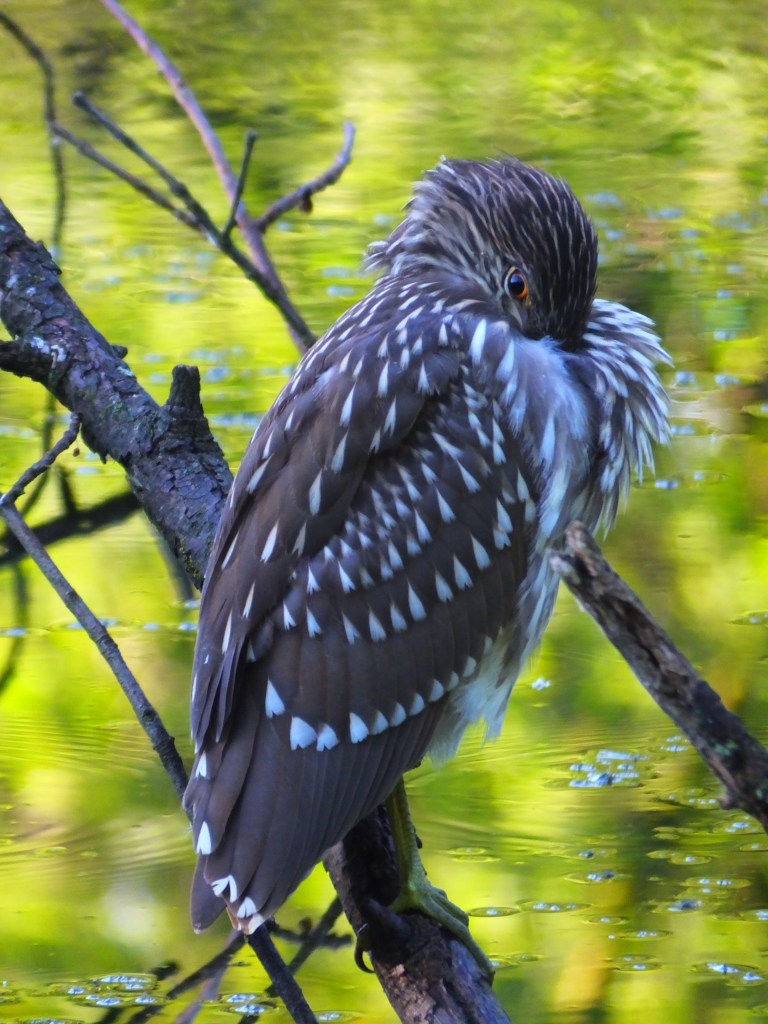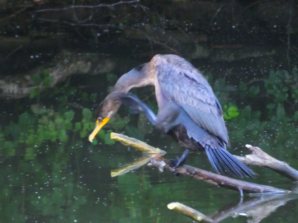 On the pond, the cormorant still reigns as the current apex predator, well except maybe for the snapping turtle, but I’ve seen no indications that the snapper is anywhere near as active. This morning the cormorant was willing to model a behavior I haven’t managed to photograph until now. This appears for all the world to be a great big yawn, perhaps instigate by my arrival with my camera yet again. It sure looks like this could be the call of the wild, but our hero has been quiet as a ghost so far.
