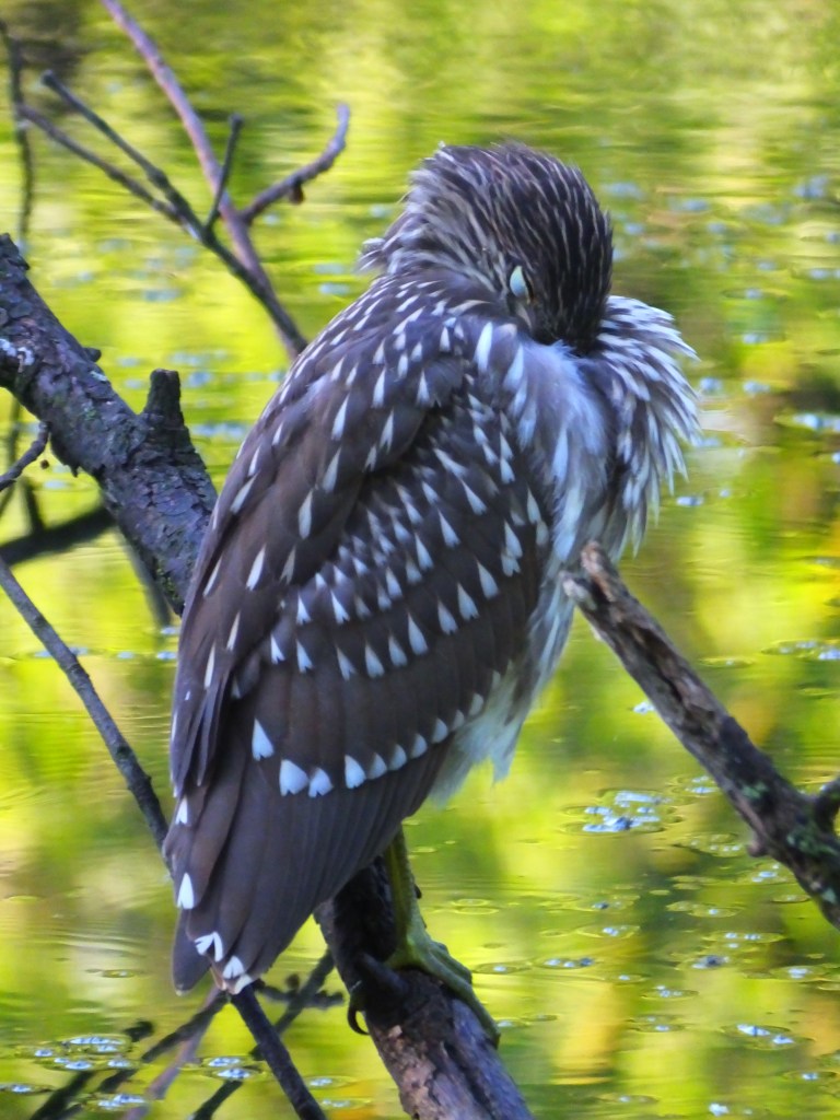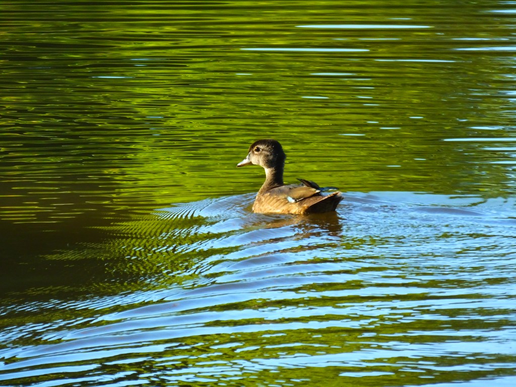 One pretty little wood duck was still dabbling through the lily pads by the mudflats.